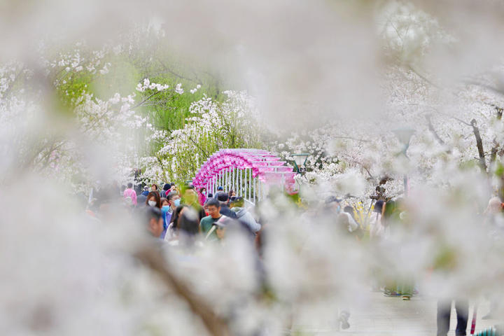 近日,北京玉渊潭公园樱花迎来最佳观赏期,吸引游客踏青赏花,感受春日浪漫。