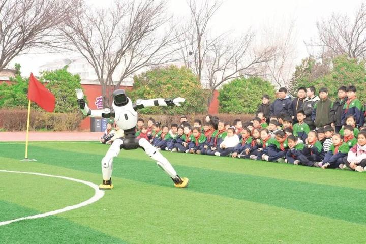 恒工精密机器人在校园表演体育项目。 成安县委宣传部供图