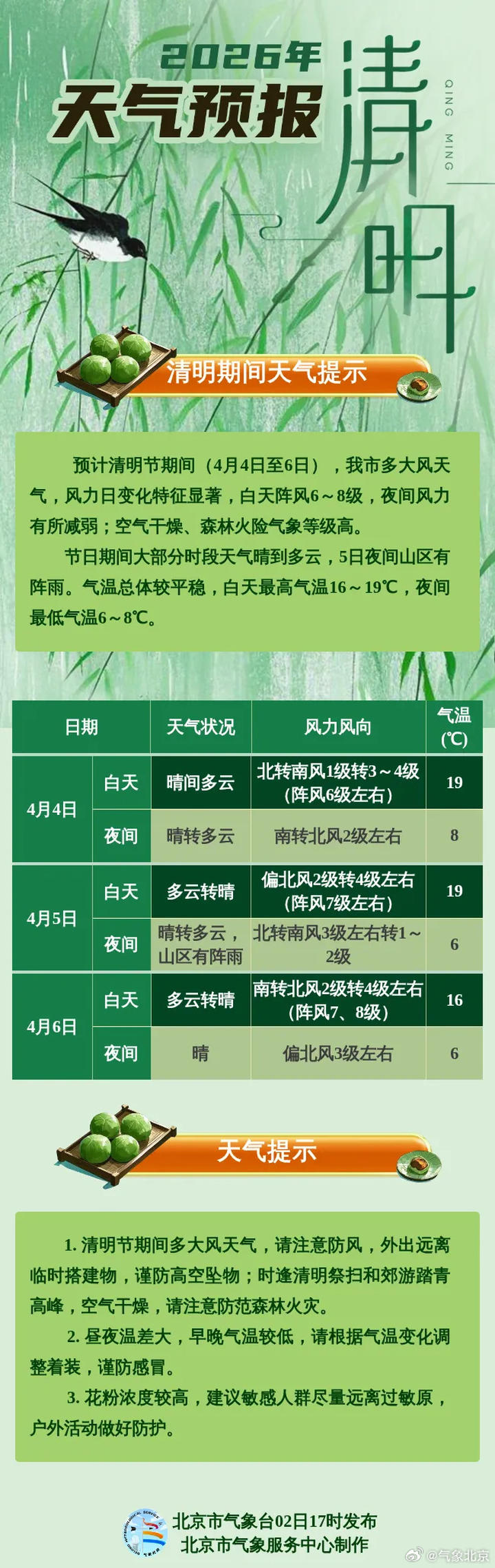 预计中午前后北京有分散性雷阵雨,雨量不大,风力逐渐加大,并伴有沙尘。