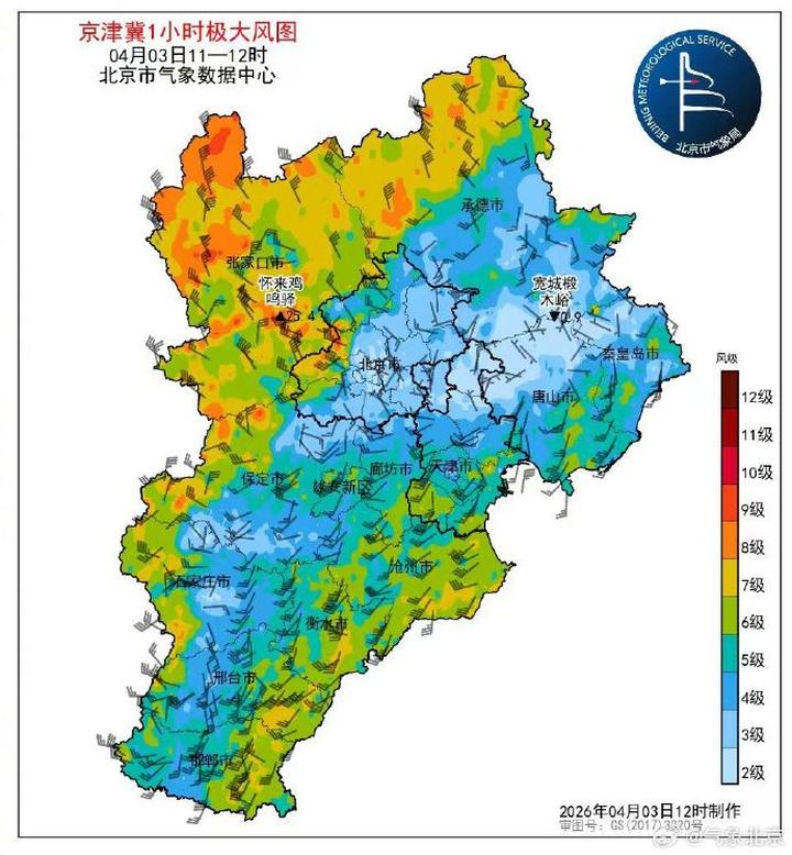 目前怀柔、延庆、门头沟、房山受弱降水回波影响,出现零星小雨。上游张家口一带阵风风力为8—9级,北京延庆、昌平、门头沟、房山阵风达7级以上。