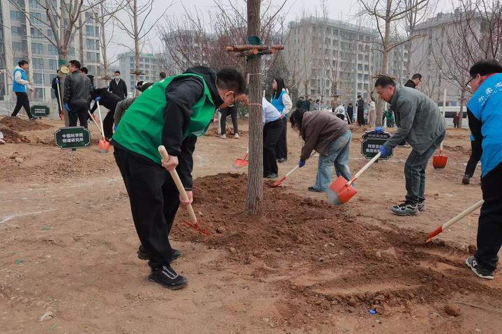 植树现场,科研人员与干部群众分工协作,挥锹挖坑、扶苗培土。活动特别挑选了长寿树种,寄托对“百年科学城”生态繁茂、科创与绿色共生的期许。中国科学院物理研究所科研人员罗军带着女儿一起参加,“我们就在旁边的小区住,以后散步时就能看小树是怎么长大的。让孩子亲近泥土、触摸自然,本身就是一种生动的‘科学启蒙’。在科学城,我们既追求科研突破,也向往推窗见绿、出门入园的美好环境。”