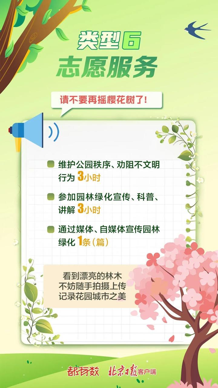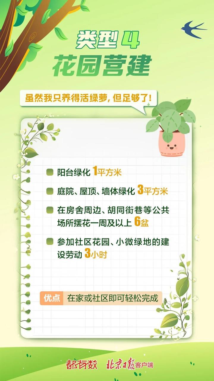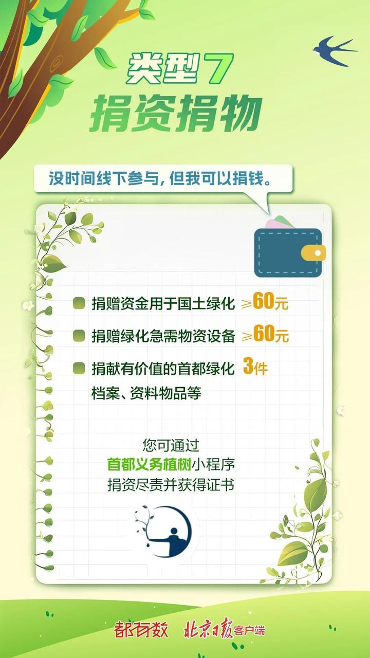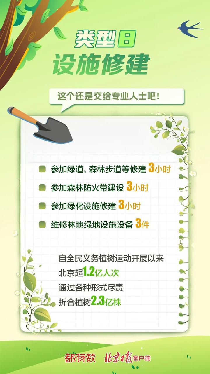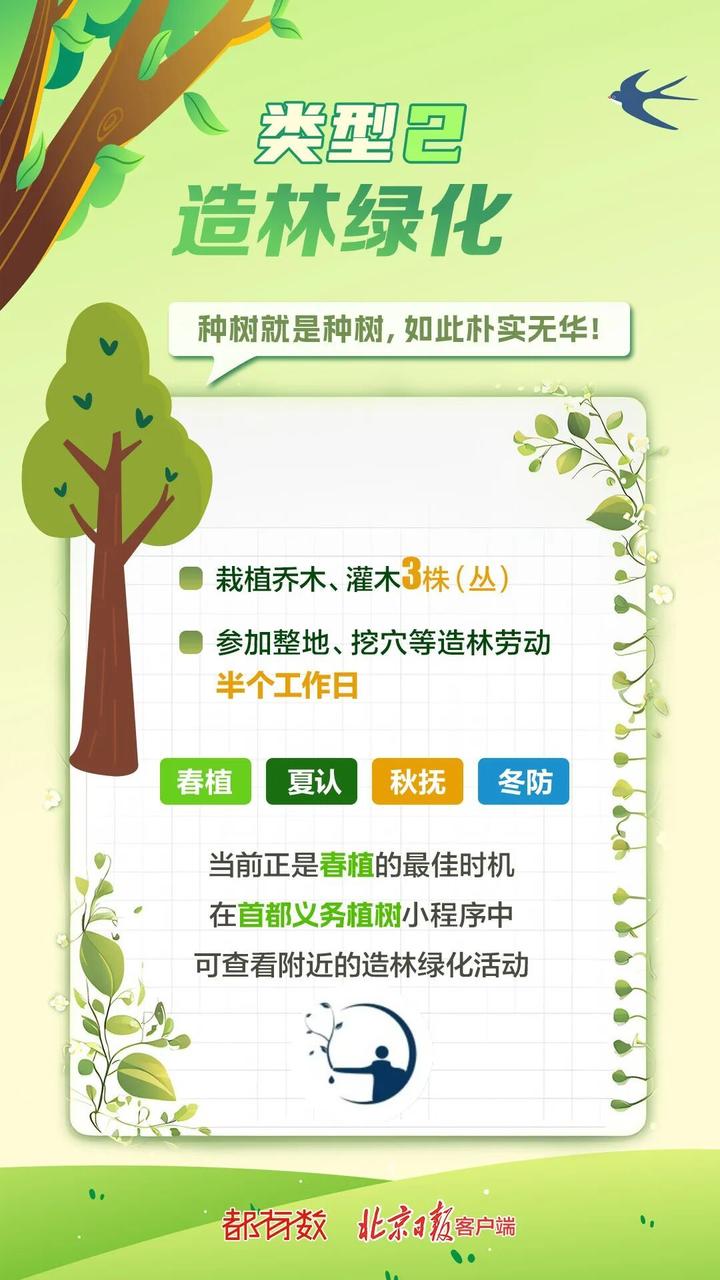 去年,北京市更新了植树尽责的形式,共8类47种。除了刨坑种树之外,还有很多您想不到的花样尽责形式,比如认养树木、打扫绿地、捐建长椅、为小树除“冬衣”、给小鸟造鸟巢,甚至在自家阳台栽花种草,只要达到一定标准,也算是完成了植树任务。