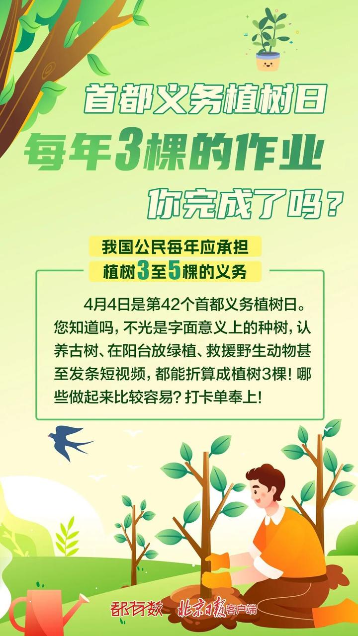 4月4日是第42个首都义务植树日,北京市于10时集中公布一批古树名木和优质景观树木资源,面向全体市民公开认养。如何选到自己心仪的树木?除了认养“冠名”之外,还可以通过哪些形式履行每年种3棵树的植树义务?
