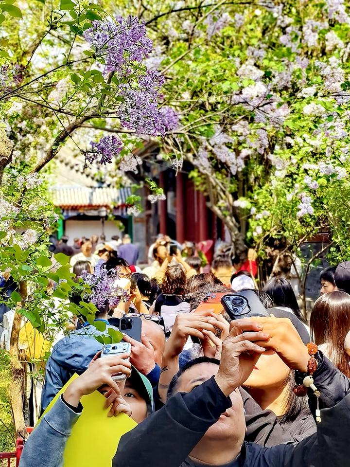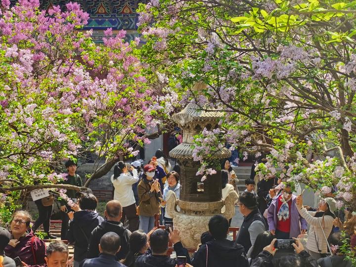 +订阅今天是清明节假期首日,到北京法源寺踏青观赏丁香花的游人络绎不绝。