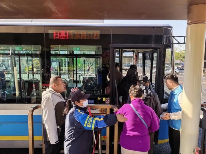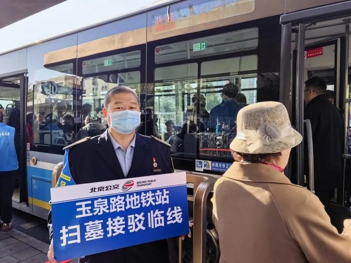 受地铁1号线西段施工停运影响,今年清明假期,玉泉路站首次成为大客流重点保障车站。公交集团在加大常规线路运力投放的基础上,在玉泉路站开设直通八宝山的扫墓接驳专线,最短发车间隔仅3分钟,全力满足市民出行需求。
