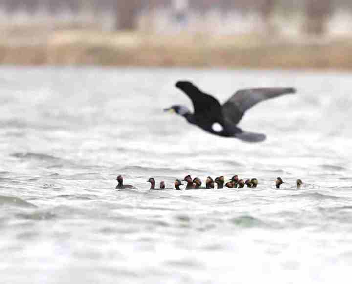 21只国家二级保护动物黑颈鸊鷉现身颐和园。