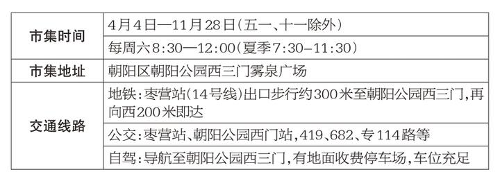 据悉,市集将从4月持续至11月,每周六上午在朝阳公园西三门举办。