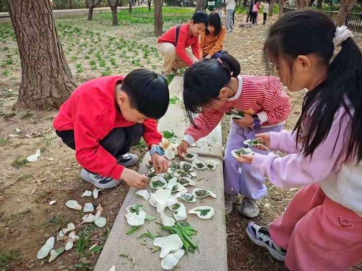 常营公园南侧几棵高大的玉兰树下,小朋友们正忙得不亦乐乎。地上散落了不少玉兰花瓣,孩子们正把它们当作“盘子”和“碗”,玩起了过家家。在这里,玉兰花守护的是一片温馨。