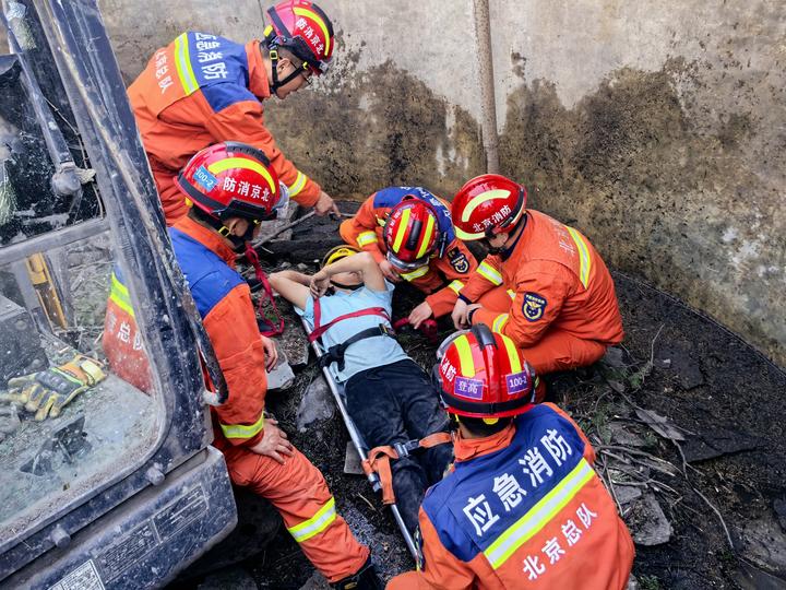 “我同事开着挖掘机不小心掉到井里了,受伤了,动不了!你们快来救他!”4月7日下午,北京市怀柔区一工地内,一挖掘机司机在作业时不慎连人带车坠入一口大井,腰部受伤无法动弹。消防员接到报警后立即赶赴现场,通过架设拉梯、固定担架等方式展开紧张救援,历时近一小时成功将被困司机安全救出并送医救治。
