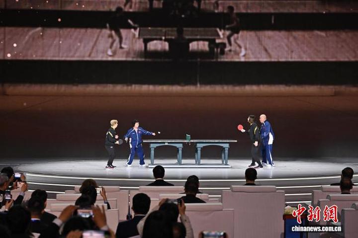 中新社北京4月10日电 (曾玥 国璇 周昕)1971年4月,一场意义非凡的中美乒乓球友谊赛在北京首都体育馆上演。55年后,四位中美“乒乓外交”亲历者重返故地,在55年前的球台前挥拍过招、握手拥抱。