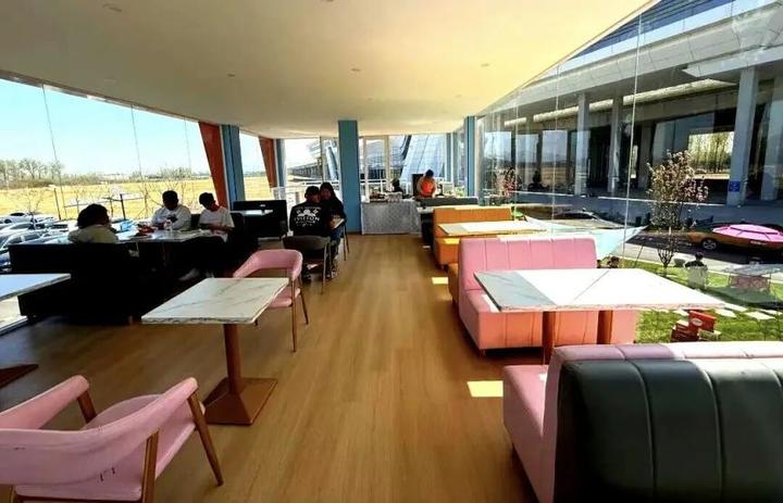 驿站内功能一应俱全:一层设有咖啡饮品区、文创商店;二层配备观景露台与特色餐吧,提供鹿肉夹馍、寿司、西餐简餐等多样美食,让往来宾客在赏景之余,也能品尝到独特的怀柔风味。