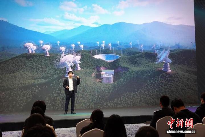姜鹏科普介绍“中国天眼”。中新网记者 孙自法 摄
