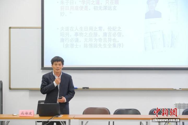 清华大学人文学院哲学系长聘副教授、中华朱子学会秘书长高海波在研讨会上作主题讲座。主办方供图
