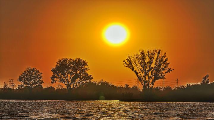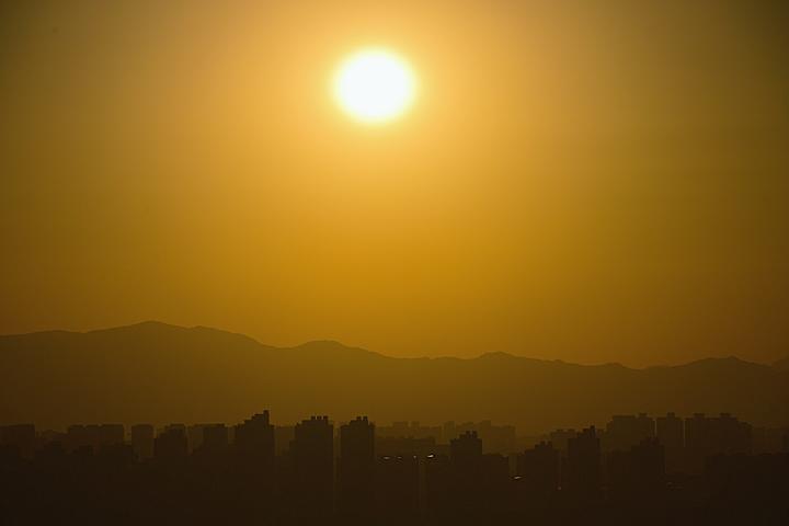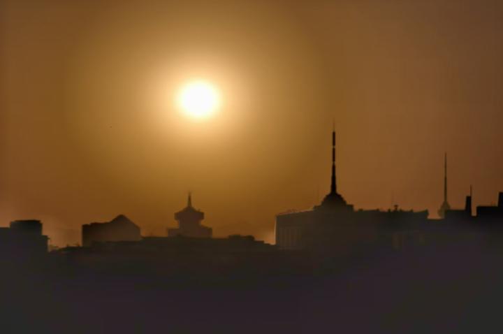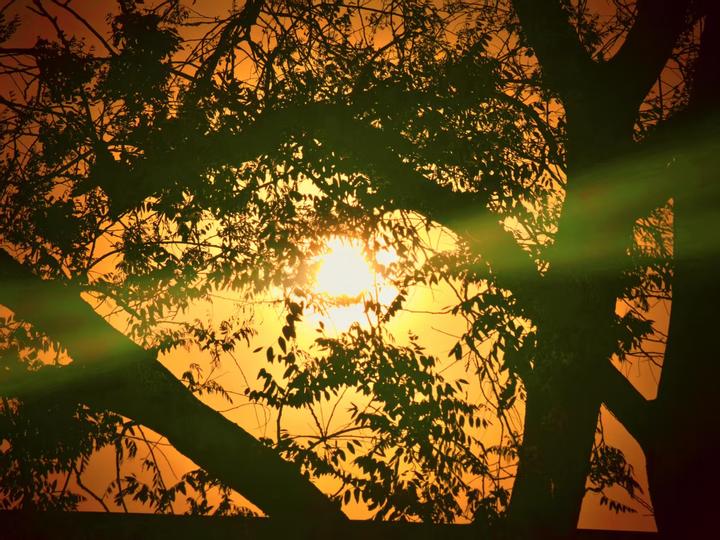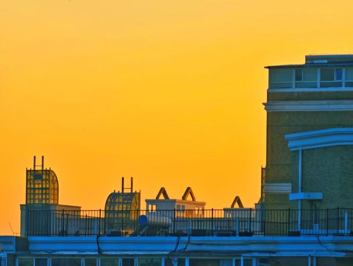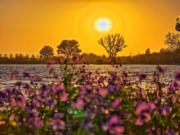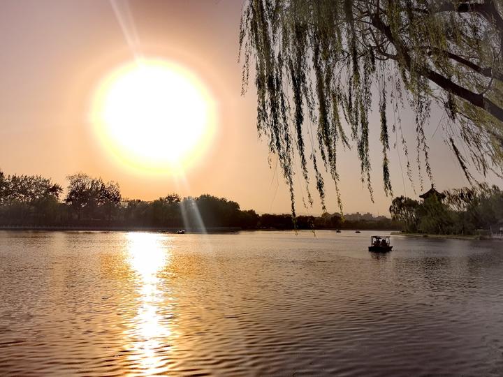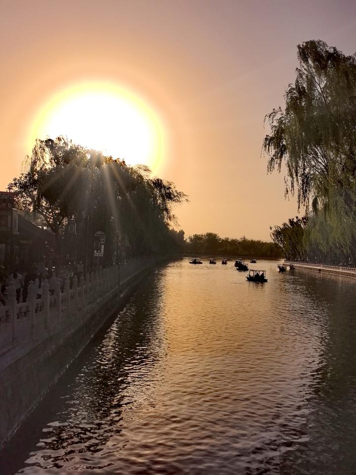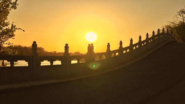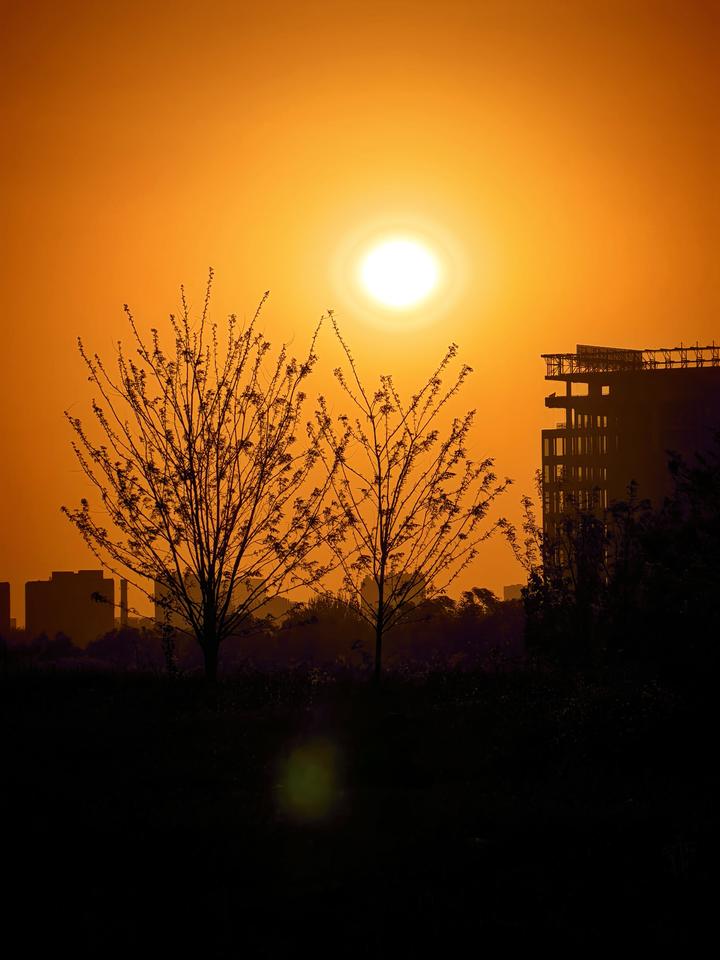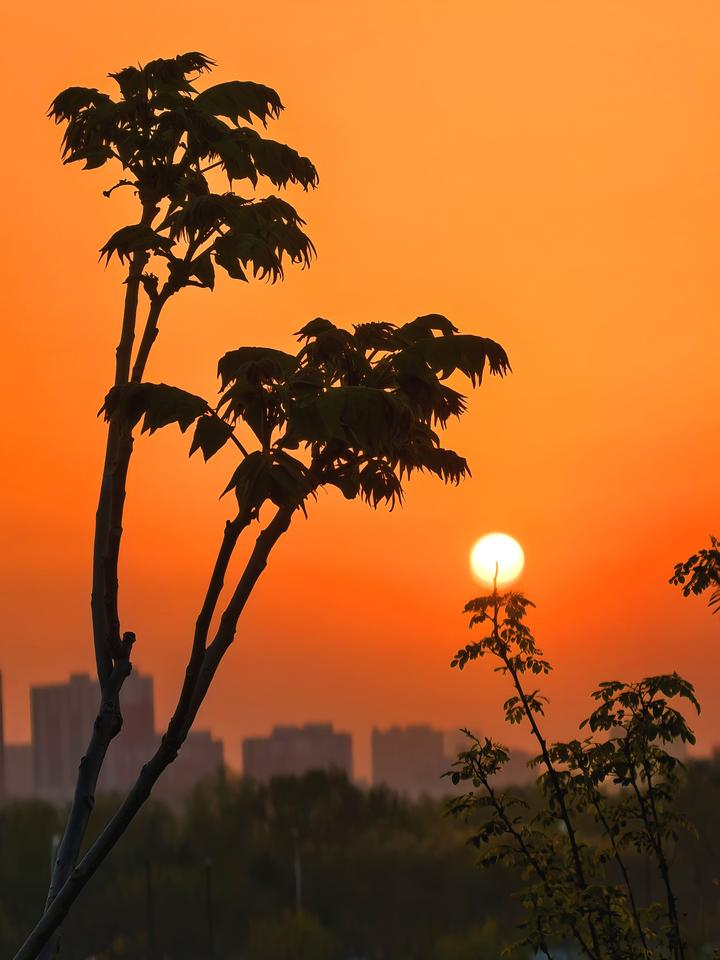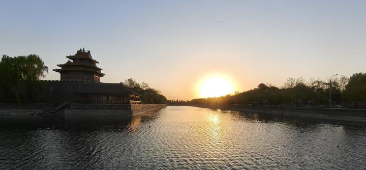 4月20日,春天最后一个节气谷雨来了。傍晚时分,北京多地出现“落日熔金”美景。