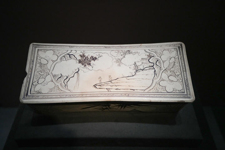 元代的“李白观瀑图”长方形枕,