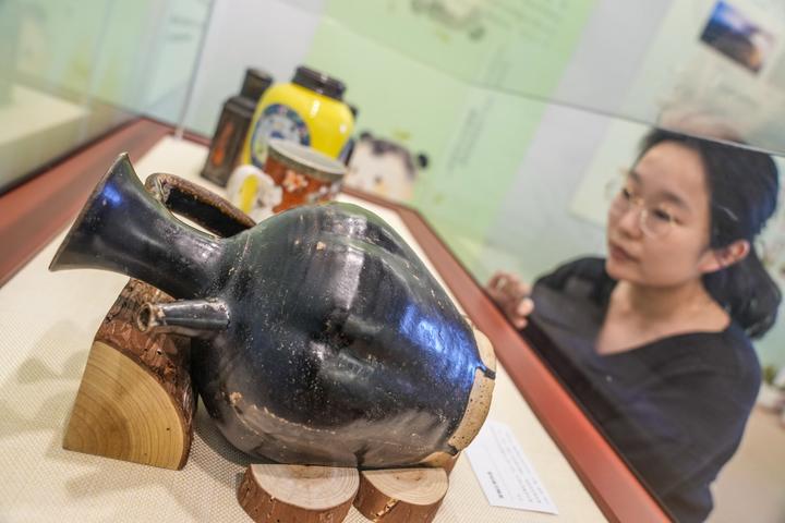 展厅里,宋代黑釉瓜棱执壶吸引参观者驻足。