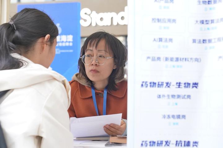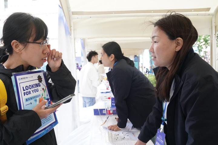 招聘会现场,亿华通、紫光同芯、中车科创、历正科技、星测未来、纳析光电等行业龙头、科技创新企业揽才,涵盖人工智能、医疗器械、商业航天等前沿领域,技术研发类岗位占比超七成。