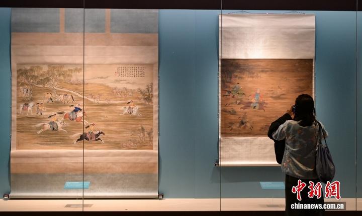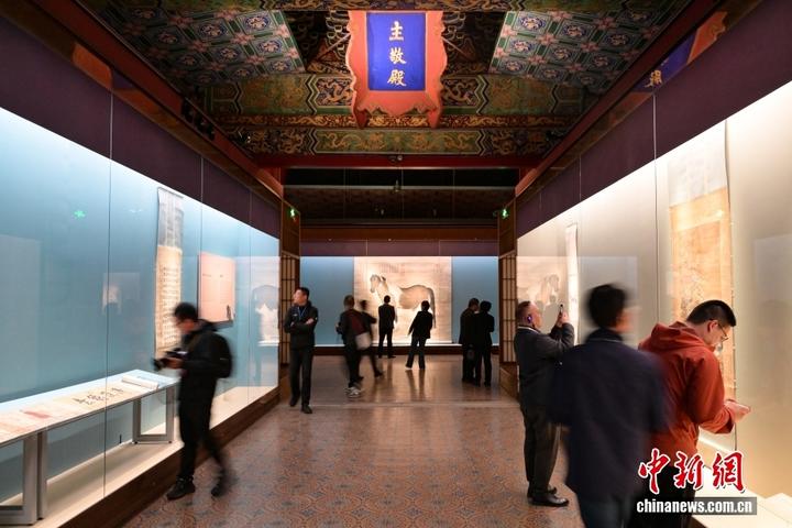 4月21日,“神骏:故宫书画艺术中的马世界”展在北京故宫博物院文华殿开幕。展览选取55件与马相关的院藏珍贵书画,展现马的神骏之姿,展示传统文化深厚魅力。图为观众在观展。