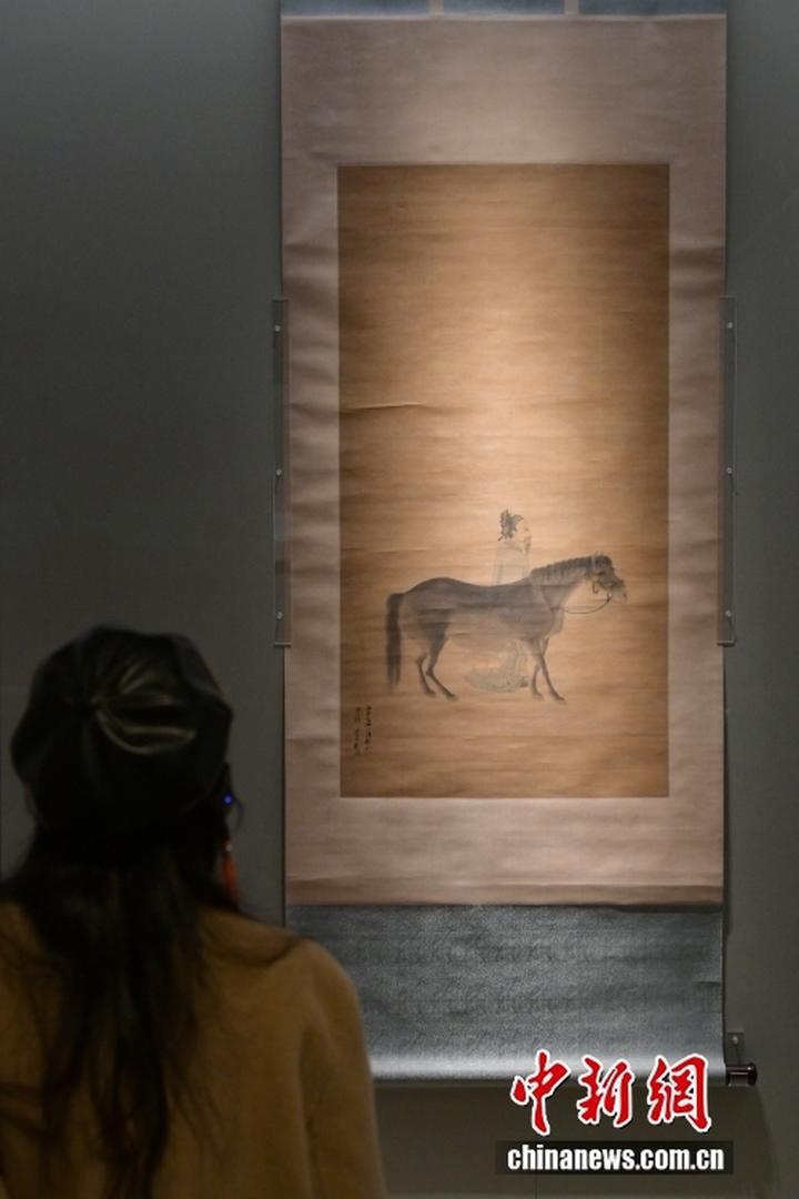 参观者在观看展出的清代张穆《奚官牧马图》轴。