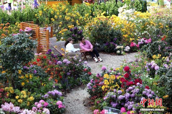 4月28日,2026北京国际花展在北京丰台开幕。图为观众在花展赏花。中新社记者富田摄