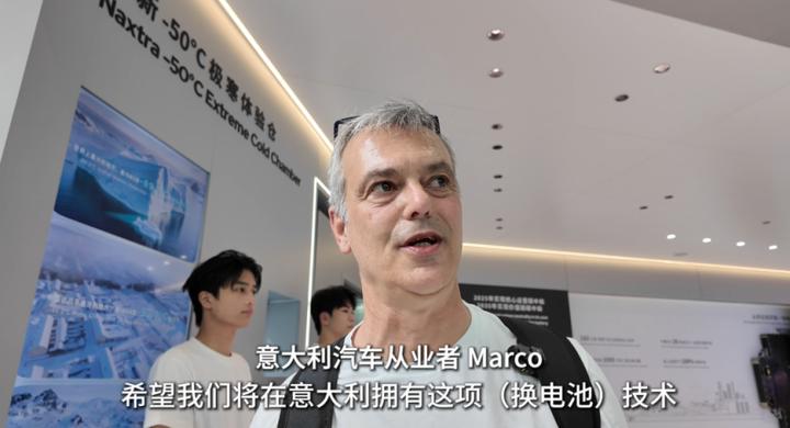 记者在这里遇到了拉着讲解员聊了很久的意大利汽车经销商,他想了解中国新能源车的换电技术,他希望未来,意大利也能拥有这项技术。