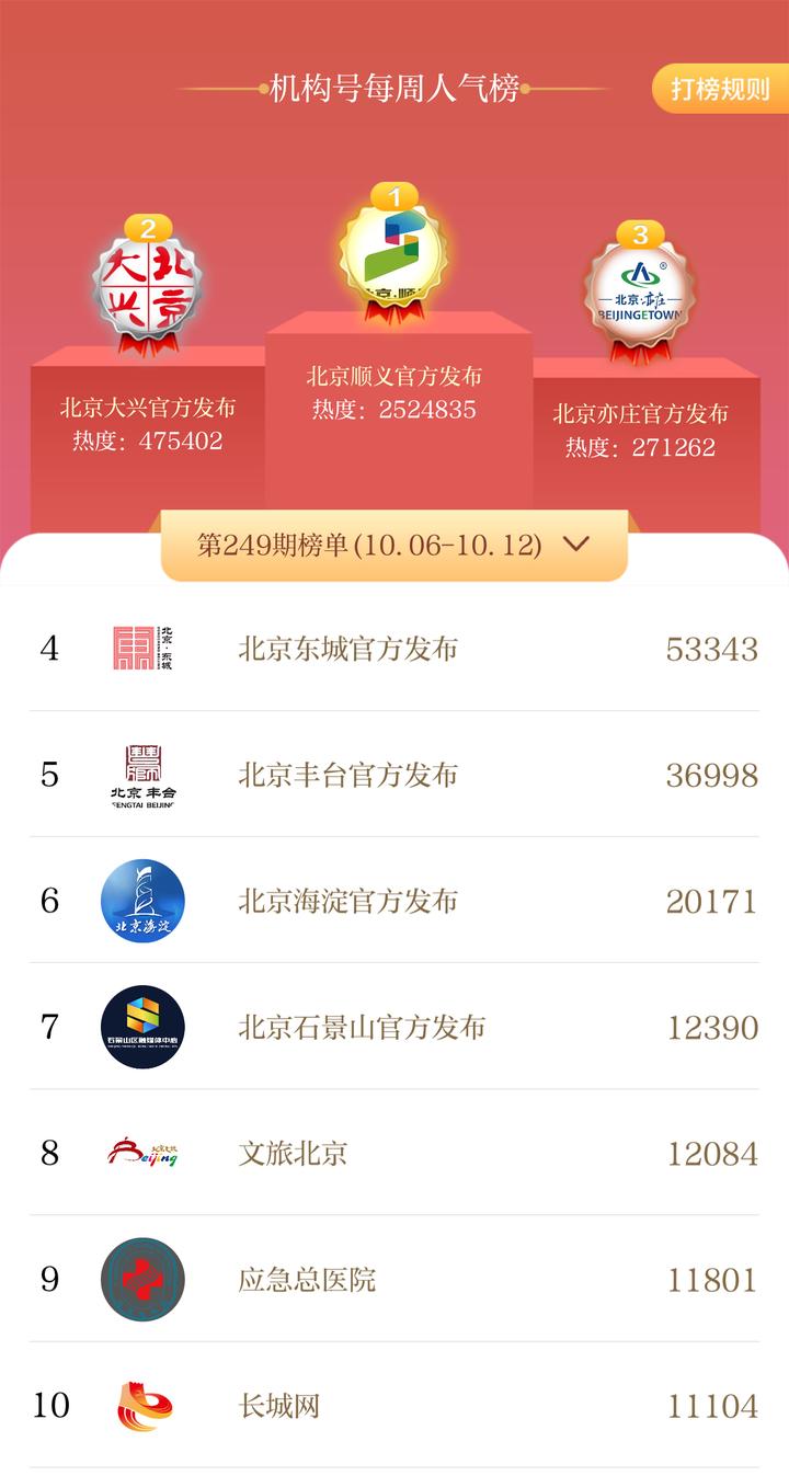 北京号一周人气榜新鲜出炉啦