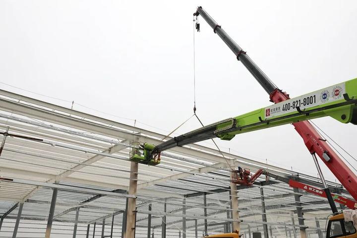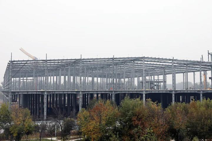 “各库房建设均按计划稳步推进。”项目施工单位钢结构专业负责人王兵介绍,当前4号库房、5号库房已完成总工程量的70%,计划12月份完成结构验收,年底前达到围护结构封闭。2号库房主体钢结构已吊装完成,预计年底完成总工程量的80%。项目部实行“日调度、周复盘”机制,通过细化工期节点等举措,确保项目按进度推进。