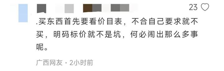 对此,有网友认为市场行为,明码标价,顾客应该先看价目表。