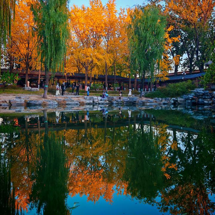 +订阅北京中山公园,银杏林和银杏大道沐浴着金色晚霞,美轮美奂。