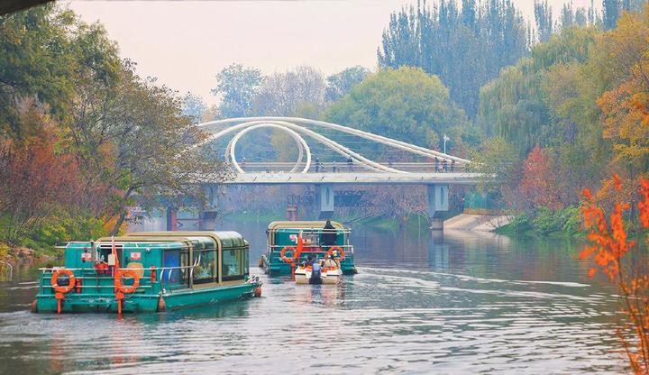 除了乘船游览,坝河两岸21公里滨水慢行系统已实现贯通,形成“步道+骑行道”的复合型交通网络,13座跨河桥完成桥下连通,市民、游客漫步滨水空间更加便捷。
