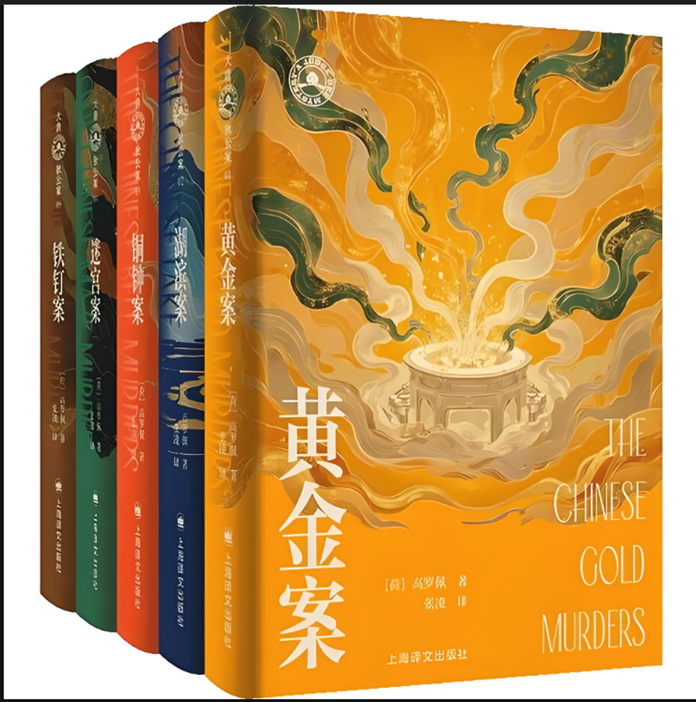 听闻《大唐狄公案》出了文库本。文库本啊!轻、小、廉、便,巴掌大,盈盈一握,薄薄的小小的一册,既适合实用的阅读需求又有审美的情趣。这真的戳中我的癖好!这套书总共十五册,目前是第一辑,共五册:《黄金案》《湖滨案》《铜钟案》《铁钉案》《迷宫案》。书籍设计师的封面很有创意,每本都突出案件的主题因素,图案和色彩绚烂中透着诡谲。
