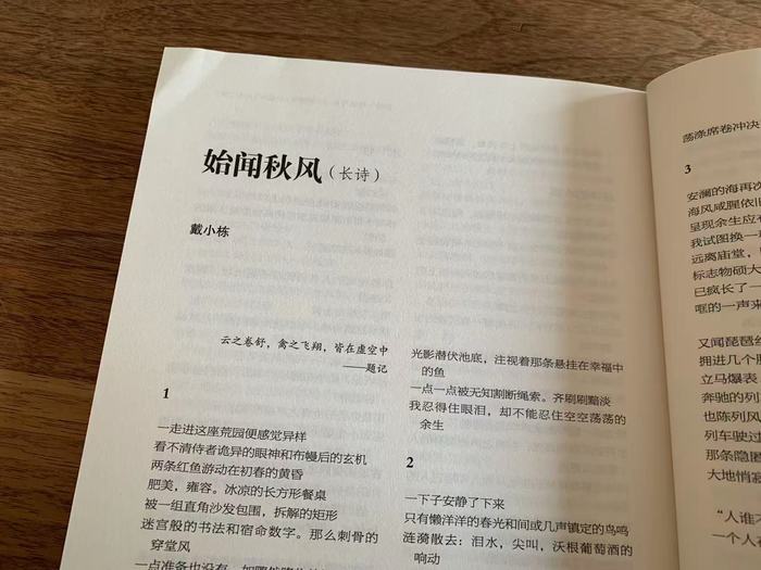 长诗《始闻秋风》发表于2026年第1期《万松浦》,此前的2024年第5期《万松浦》,也曾发表戴小栋的组诗《琥珀色的虚空》,作为一本高品质的大型文学双月刊,在如此短的时间内连续两次刊登同一位诗人的作品,堪称罕见。