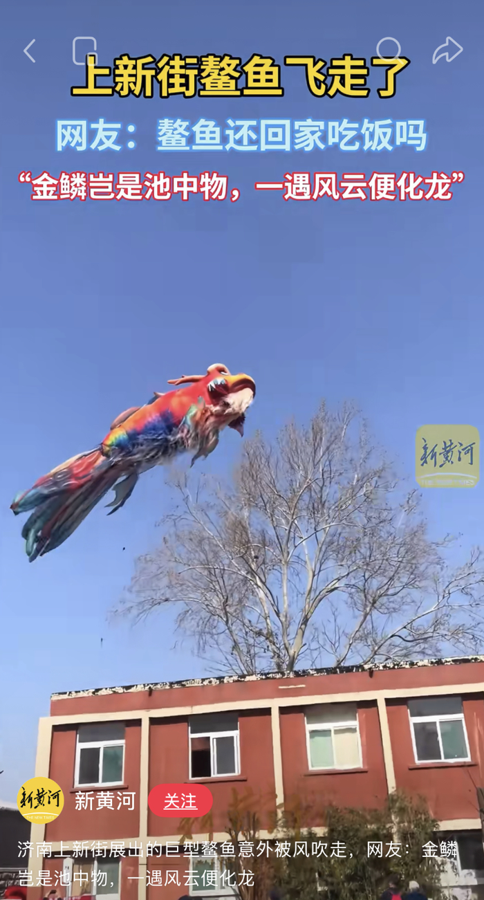 当作品在元宵节前再次悬挂于上新街上空时,那只曾经“飞走”的鳌鱼,将以另一种方式重回城市视野。它不仅是一幅艺术作品,也成为一段关于风、城市与想象的共同记忆。
