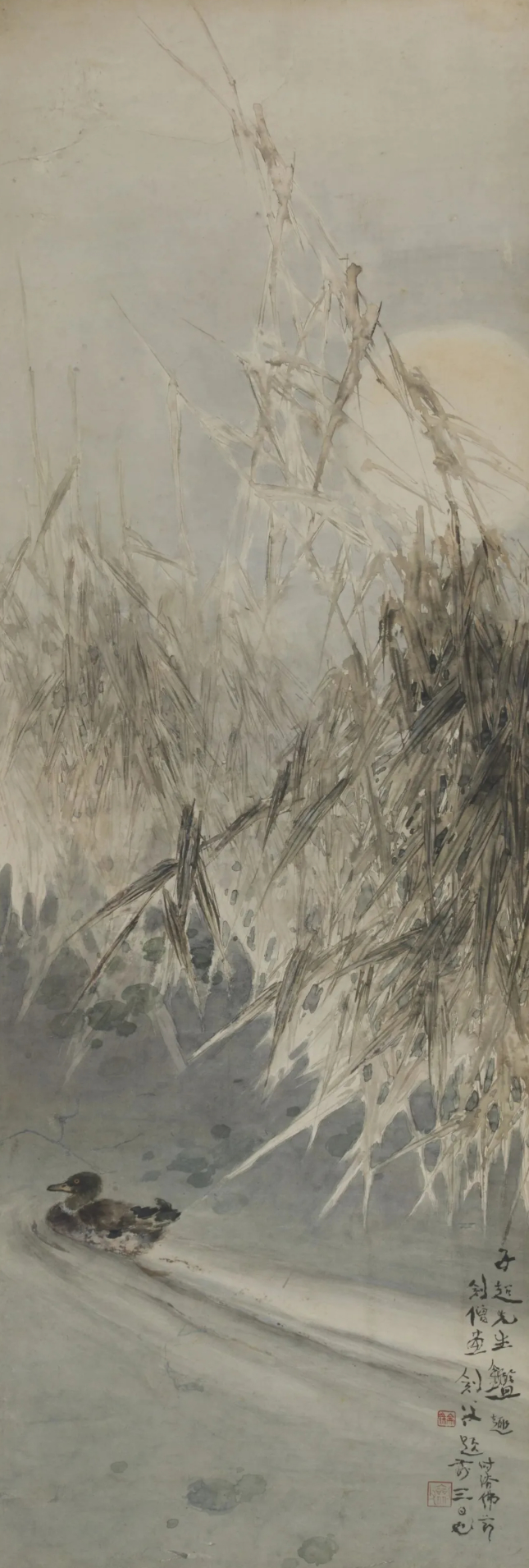 《苇风凫影图》高剑父、高剑僧 131cm×45cm