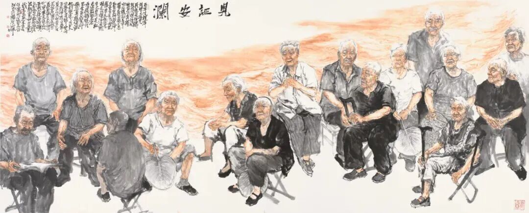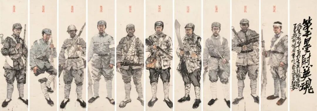 张宜、何怀雨、华杰 《笔墨慰英魂——为马石山十勇士英烈塑像》 180cm×510cm 2025年