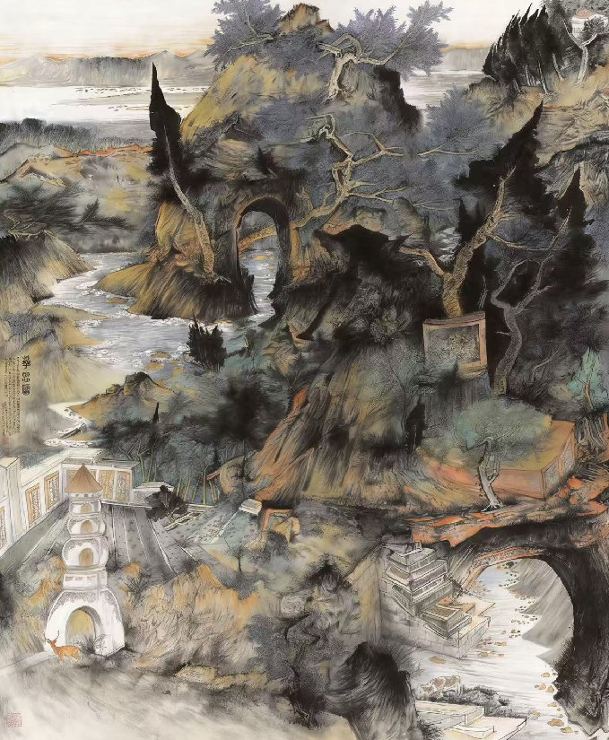 接着,他重申了自己在开幕式发言中提到的“和而不同”:“水墨于我们而言,不仅是一种媒材,更是一种观照世界、体悟时代的方式。所以在创作中,我们始终努力将中国画的写意精神与当下的生活现场、时代精神相融通。在展览中,我们和而不同,彼此砥砺、彼此启发,希望能以四象各美其美之姿,传递中国水墨艺术在当代的蓬勃生机。”