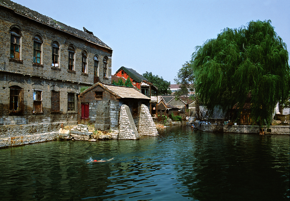 明崇祯十二年(1639)正月,清兵攻入济南。德嗣王朱由枢被清军俘获,德王府被付之一炬。清康熙五年(1666),山东巡抚周有德在“德蕃故宫”旧址上修建巡抚衙门,自此,这里成为全省最高权力机构。因修建规模小于德王府,濯缨湖的一部分便被划到衙门之外,湖面也逐渐退缩,周围渐成巷陌,但濯缨湖(濯缨泉)的名字被传承下来,念旧的济南人却喜欢按历史地理坐标称之为王府池子。这片流落民间的古泉也洗尽铅华,与百姓朝夕相处。街坊四邻到泉眼处汲水,在北流的小河畔捣衣浣纱,在岸边柳荫下纳凉、垂钓,在池中游泳嬉戏,成为老城过往的风景与记忆。