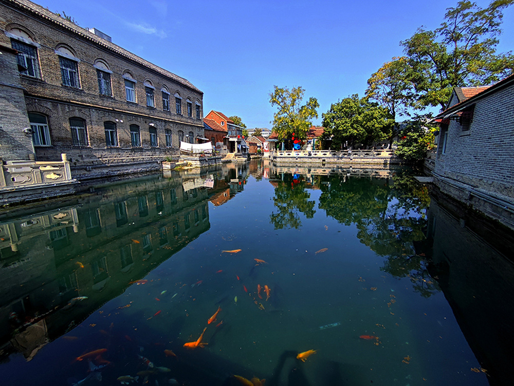 “十一”前夕,相关部门对古城内部分街巷房舍进行了一轮规模不大不小的整修,几条老街巷重新铺设了石板路,一些老房子得以修缮。要说变化最多者,当属珍珠泉西侧。王府池子街南首被掩盖近半个世纪的太乙泉重见天日。王府池水流经刘氏泉南侧的泉溪得以疏浚,《老残游记》中描绘的东小王府街(今省府东街)上的“高升店”被“移植”到此,卖起了咖啡。西更道上珍珠泉大院西墙变身“文化墙”,展示历代名家歌咏济南的诗篇。靠近珍珠泉池的围墙上,开了两个漏窗,使大院外的行人可驻足一窥躲在深闺的名泉。