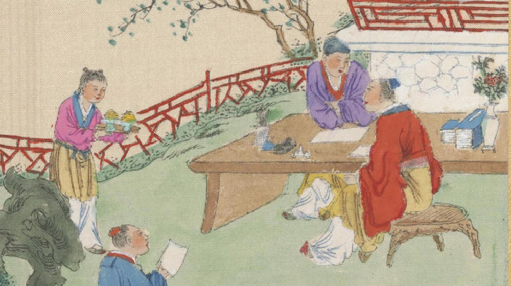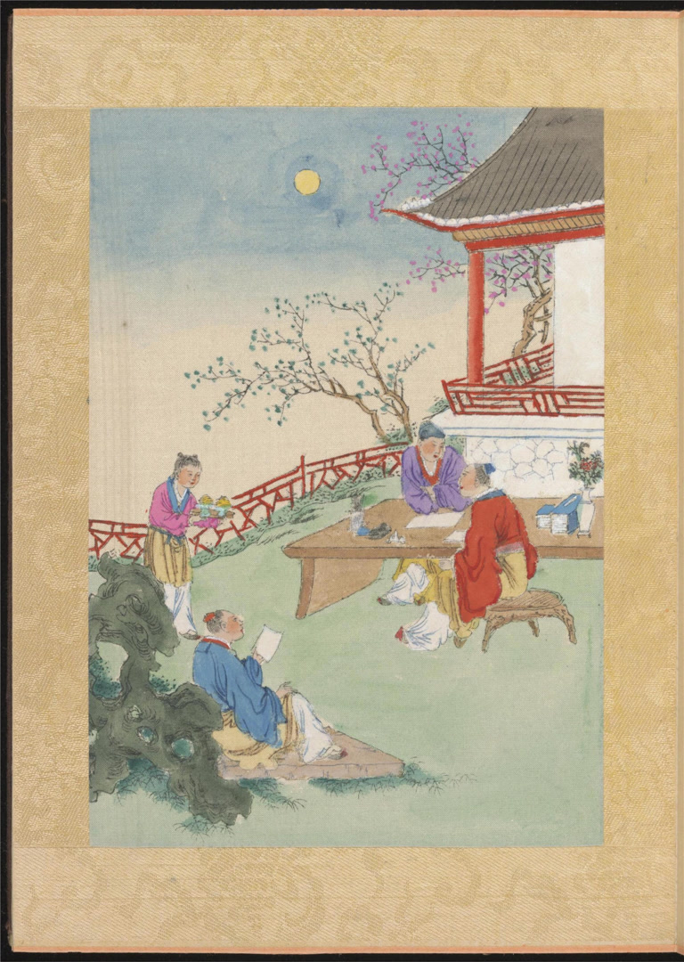 清代外销画中英文版《年节习俗考全图・重阳登高》