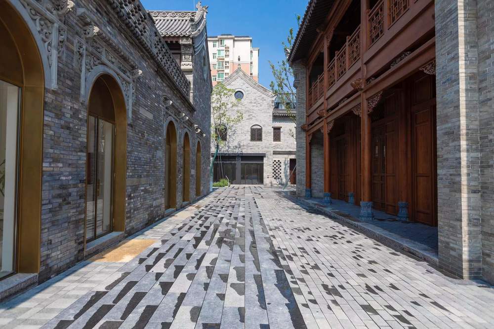 一条主街曲折向前,新旧相间的石板路古朴又雅致。15个主题院落错落有致,颇具东方美学的外表下藏着科技与匠心。