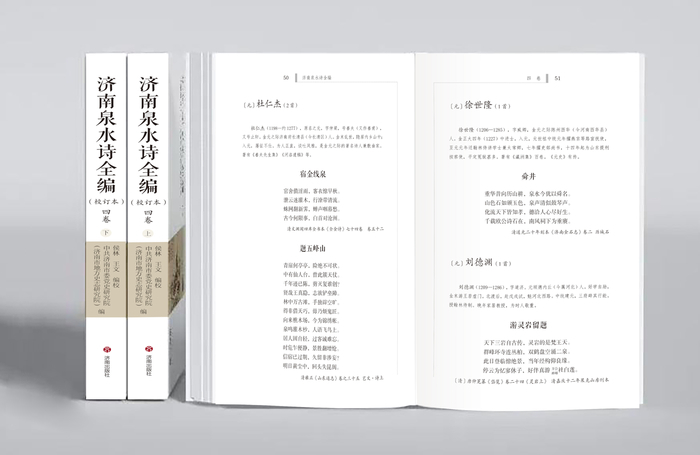 《济南泉水诗全编》是迄今为止,收录作品最全、检核最精的一部济南古代泉水诗文献读本。四卷本共收录济南古代泉水诗5279首,其中的4000余首,来自两位学者十余年的独家发现,是他们从数万种古代诗文别集中,大海捞针一般,一首一首地发掘打捞出来的。这些诗作藏身于历史深处,其搜集与发现颇为不易。此等历经寒暑、探赜索隐之苦,于今终得回报。