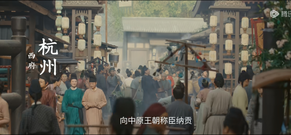 《太平年》第一集里就出现了杭州市井画面,字幕:“西府杭州”。
