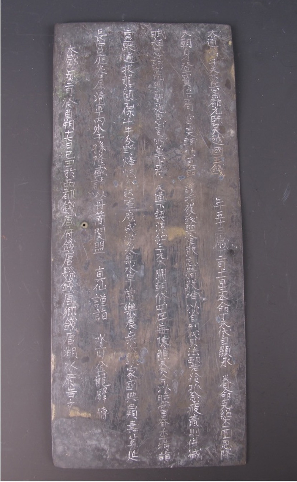 20世纪50年代,杭州西湖疏浚时发现历代吴越国王钱镠、钱元瓘、钱弘佐、钱弘俶的8枚投龙银简。其中一枚银简,为天福四年(939)吴越国第二代国王钱元瓘53岁时所投。