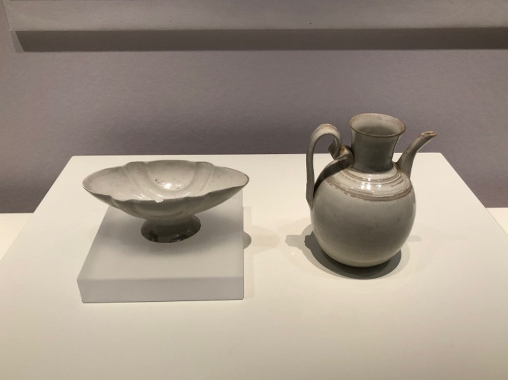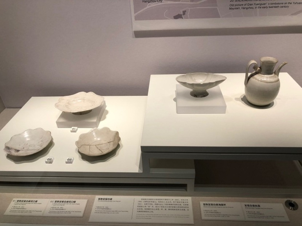 吴越国生产大量精美的越窑青瓷,上贡北方中原朝廷,因恪守臣节、屡有战功,受朝廷认可并获赏赐,得到北方精品白瓷。吴越国出土白瓷,胎釉洁白,色泽莹润,器壁轻薄,代表了晚唐白瓷生产的杰出工艺成就。不少器物底部刻有“官”款或“新官”款。