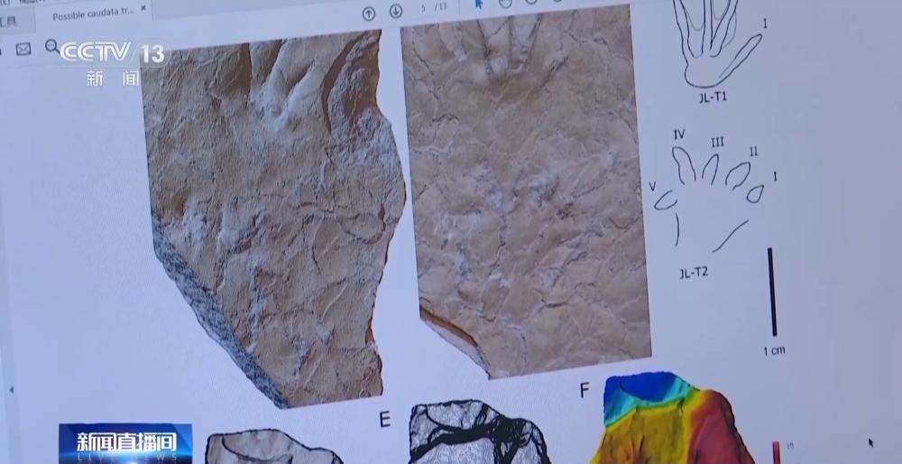 中国地质大学(北京)副教授 邢立达:蝾螈类这种足迹在整个化石的记录里面非常少见,因为它以水体生活为主,比较少在陆地上留下足迹,体积非常小,是很难保存的化石,所以这类足迹的发现,对我们了解遗迹化石里面的两栖类动物足迹形态变化其实是非常重要的。