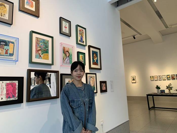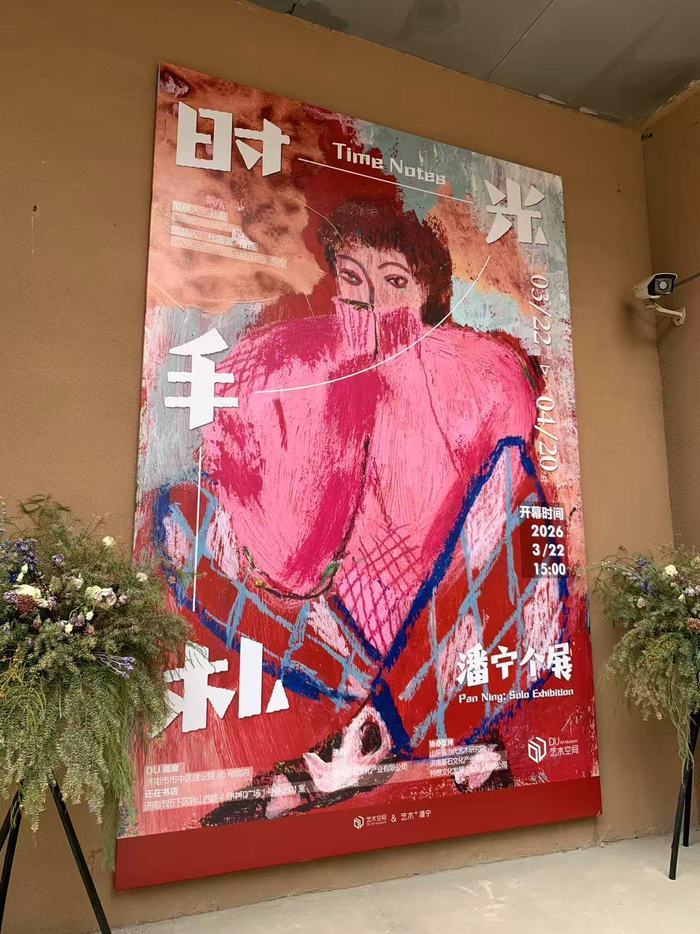 就是在还在书店的线下共读活动中,潘宁认识了同样来参加活动的诗人、艺术家孙磊。潘宁把自己的画拿给孙磊看,没想到得到莫大的鼓励。孙磊觉得潘宁的画“很有意思”,还建议她搞一个画展。由此,原本只在小红书上分享的画作,最后变成了今年3月22日在位于济南市市中区建设路86号的DU艺术空间亮相的“时光手札——潘宁个展”,展览的策展人,就是孙磊。
