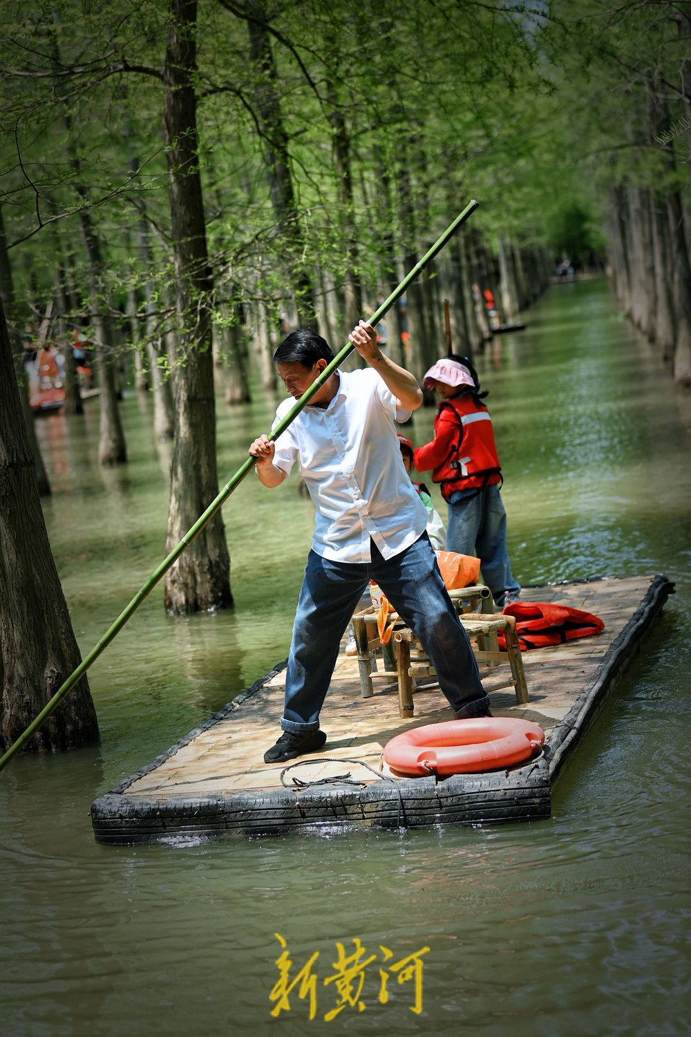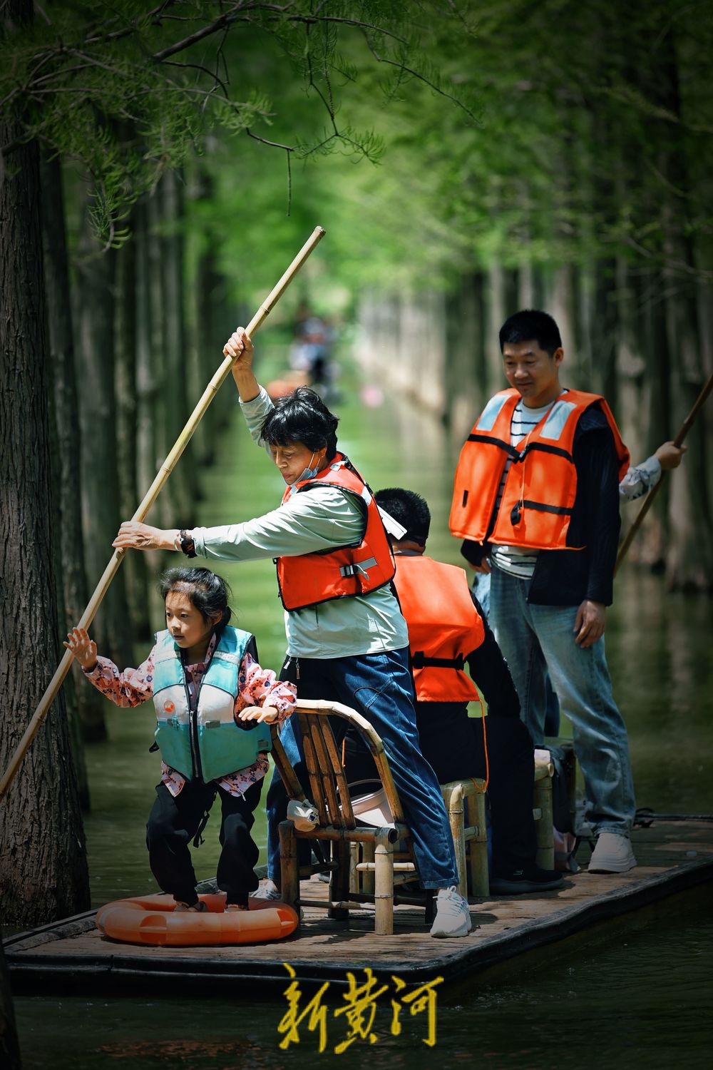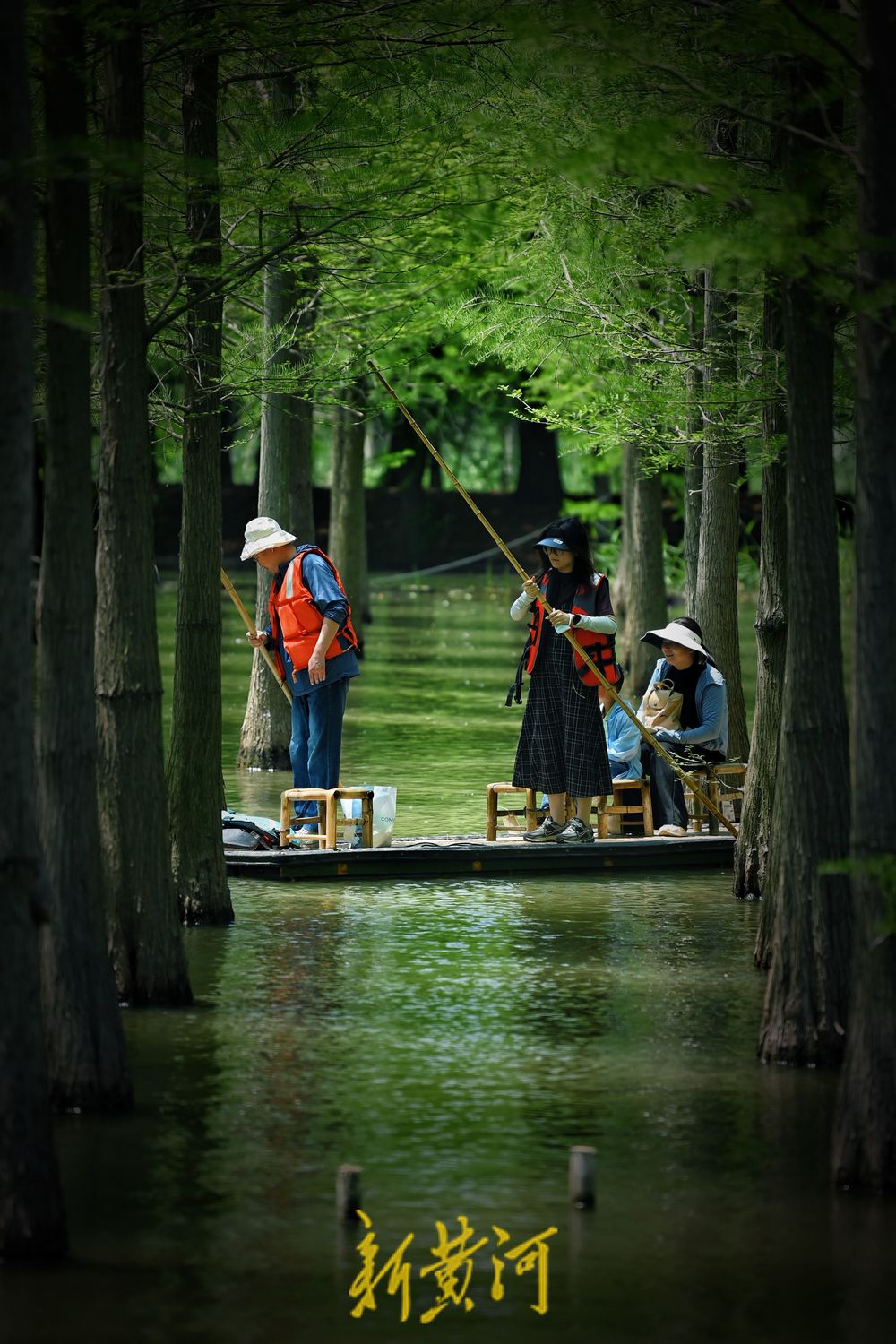 5月3日,江苏泗洪洪泽湖湿地景区千亩水杉林吐绿,五一假期,游客纷至沓来,或沿栈道徜徉杉林,或划竹筏在林中穿行,尽情感受“林在水中生,船在林间行,人在画中游”的生态意境,让人流连忘返。