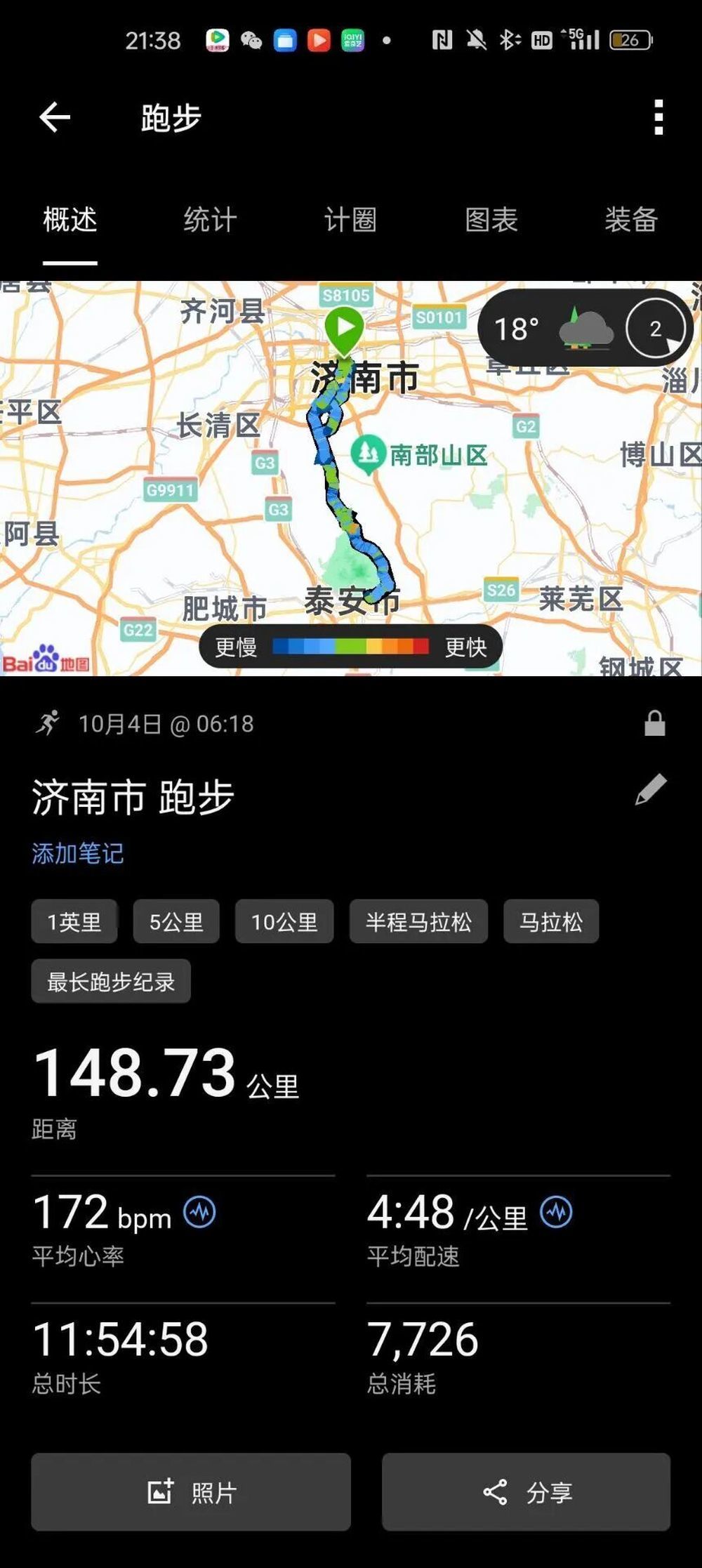 晚上8:50,当最后一位跑者冲回山东大学操场,所有队员齐聚陪同他跑完最后400米。“绶带”在灯光下发出银白色光芒,配速器停止在148.73公里,11小时54分57.08秒,欢呼声响彻夜空。