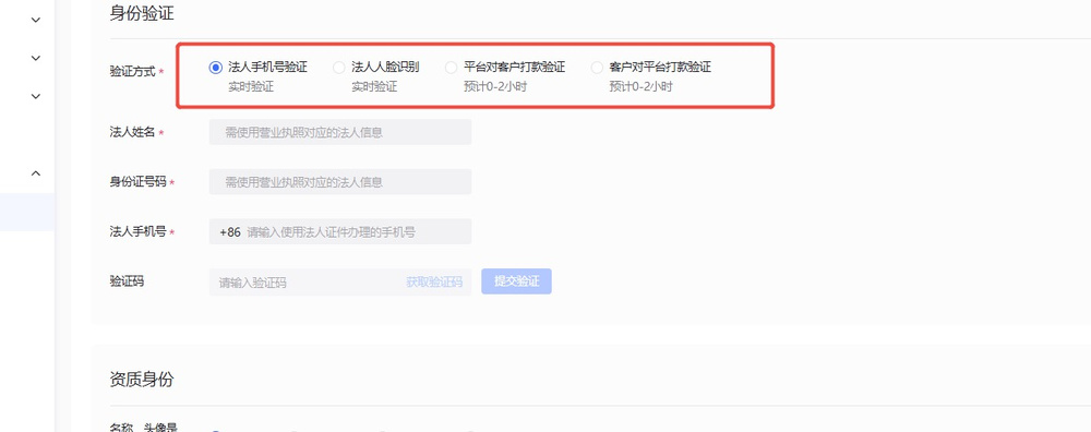 平台客服解释,验证环节主要有法人或打款验证,具体可分为法人手机号验证、法人人脸识别、平台对客户打款验证或者客户对平台打款验证。