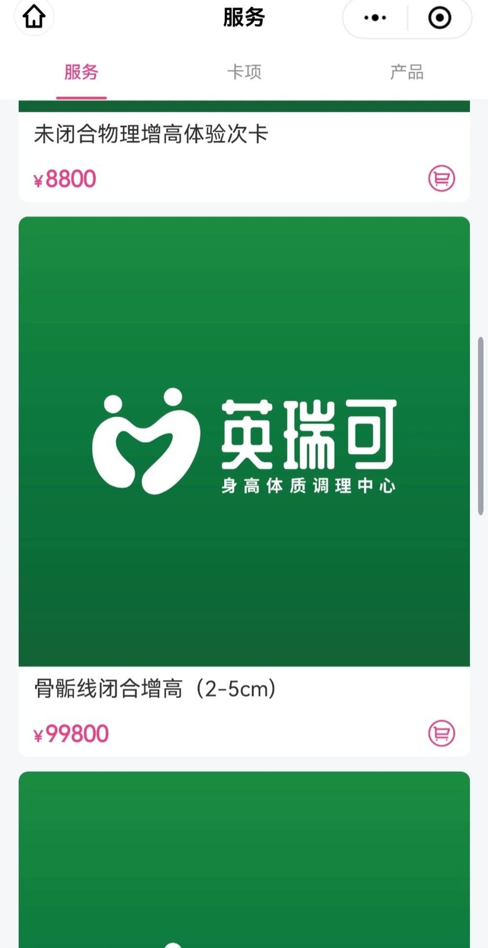 此前记者检索发现,在英瑞可小程序上,骨骺线闭合增高项目最高标价99800元,未闭合物理增高体验次卡项目标价8800元。不过,短视频团购平台上卖的物理追高体验卡更便宜,体验两次99元,已售100多单。英瑞可身高体质调理中心短视频账号简介写道:“已帮助3000+家庭实现身高跳档。”
